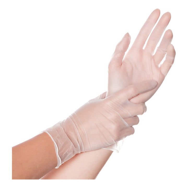 Los guantes de vinilo son una excelente barrera de protección personal, ideal para alérgicos al látex.Se usan en procedimientos o tareas cortas no asépticas en que se requiera mayor resistencia a ácidos, grasas y alcoholes. CAJA 100 guantes transparentes vinilo desechables. Importante, no se acepta devolución del producto una vez abierto y probado. Especificaciones: * Sin Polvo * Transparentes * 100 unidades por caja * Resistente a la rotura por estiramiento y desgarro. * No Latex * No produce irritación al contacto con la piel. * Superficie interna lisa. * Alta sensibilidad al tacto.