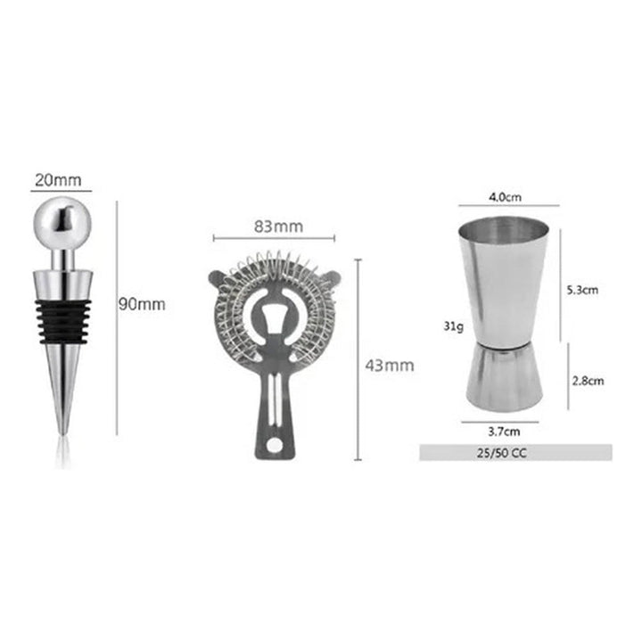 1. El juego completo de 24 piezas de coctelera incluye coctelera de 750 ml / cubitos de hielo de acero inoxidable / paleta triturada / taza medidora / clip para hielo / sacacorchos / vertedor de licor / pajita / colador / tapones / cepillo / cuchara / mezcla Cuchara: Crea cócteles de licor de nivel profesional con confianza, sin importar si eres un bartender experimentado o un principiante. 2. Material de acero inoxidable 304 - el juego de coctelera está hecho de material de acero inoxidable 304 de grado alimenticio, este kit de camarero está engrosado para asegurarse de que no se doblará, romperá, oxidará ni deformará, totalmente duradero para barras de gran volumen. y bares en casa. Uso sostenible durante muchos años. 3. Colador bien diseñado y jigger doble - El colador del filtro está equipado con un resorte de alta densidad, que evita que los fragmentos de hielo o la pulpa de fruta entren en sus bebidas. Con medidas precisas y precisas para 25 y 50 ml, 15 y 30 ml. La coctelera ofrece un excelente sello hermético, ideal para revolver Manhattan y Martini o para batir cócteles como Mojitos y Margaritas. Cubre todas las necesidades que pueda tener de cócteles o bebidas razonables. 4. Cubo de hielo reutilizable - a diferencia de los cubitos de hielo normales, esos cubitos de hielo reutilizables hechos de acero inoxidable pueden darle un suave frío a su bebida sin diluir y no estropearán el sabor. Coloque las piedras de whisky en el congelador durante 4 horas o más. Cuando esté listo, coloque 3-4 cubos en su bebida según sus preferencias personales para enfriar whisky, escocés, bourbon, vodka, vino blanco, etc. 5. Perfect Mixer Bartender Gift - El juego de bartender de mixología premium es el mejor regalo para cumpleaños, bodas, aniversario de bodas, inauguración de la casa, Acción de Gracias, Día del Padre, Día de San Valentín, Navidad, etc. Este juego de bartender mezclador es adecuado para bartenders profesionales, principiantes, familia, amigos, amantes. ------------------------------------ Nuestro increíble juego de bartender de 24 piezas es un accesorio imprescindible para cualquier hogar. Diseñado para personas creativas que siempre quieren probar una bebida elegante, este kit de mixología le permite crear su bebida exclusiva o las clásicas. El juego incluye 24 accesorios de acero inoxidable que no se oxidan, no se oxidan ni se rompen. Cada pieza está fabricada con los mejores materiales que garantizan un uso más seguro y duradero. ------------------------------------ Algunas de las características asombrosas de este producto: Kit de camarero premium; -Cuenta con 24 accesorios de lujo; -Instrumentos hechos de acero inoxidable 304 para mayor durabilidad; -No se oxida ni se oxida; -Fácil de usar; -Conjunto de mixología completo; -Regalo único para amigos. ------------------------------------ El conjunto incluye: * 1 * 750ml Coctelera * 1 * cuchara mezcladora * 1 * paleta triturada * 1 * taza medidora (15 ml y 30 ml) * 1 * taza medidora (25 ml y 50 ml) * 2 * Clip de hielo * 1 * sacacorchos * 2 * vertedor de licor * 4 * cubitos de hielo de acero inoxidable * 2 * paja * 1 * colador * 2 * tapones * 1 * cepillo * 2 * cuchara Cómo utilizar: Coctelera de 24 piezas a prueba de herrumbre: acero inoxidable de primera calidad. Ofrece un gran sellado hermético. 1. Filtro / colador de cóctel: el uso del colador le permite filtrar esos trozos de flora (junto con pequeños fragmentos de hielo) y presentar un cóctel nítido y perfectamente claro. 2. Cubitos de hielo de acero inoxidable: coloque las piedras de whisky en el congelador durante 4 horas o más, cuando esté listo, coloque 3-4 cubos en su bebida según sus preferencias personales para enfriar whisky, whisky escocés, bourbon, vodka, vino blanco, etc., esos cubitos de hielo reutilizables hechos de acero inoxidable pueden traer un suave enfriamiento a su bebida sin diluir y no estropearán el sabor. 3. 2 boquillas de vertido de licor: ofrecen la mejor precisión y control, evitan derrames y salpicaduras. 4. Jigger de doble cara: ajuste con cuidado el contenido de alcohol de una bebida sabrosa para crear mezclas aromáticas 5. Muddler profesional: es perfecto para triturar frutas, azúcar morena y trocitos de hielo, y tiene un extremo dentado en forma de diamante, por lo que también se puede utilizar para prensar ajo en la cocina. 6.Cuchara mezcladora: Cuenta con un diseño de patrón en espiral que le brinda un agarre firme y firme y hace que mezclar bebidas sea más fácil que nunca. 7. Pinza para hielo: agarrar cubitos de hielo, azúcar, comida ... y así sucesivamente. 8. Sacacorchos de doble palanca: Abrebotellas. 9. Tarjetas de recetas de bonificación: Ofrezca algunos consejos y pasos para hacer bebidas. Las tarjetas bonitas y útiles pueden ofrecer un buen estado de ánimo al preparar bebidas. ________________________________________________________