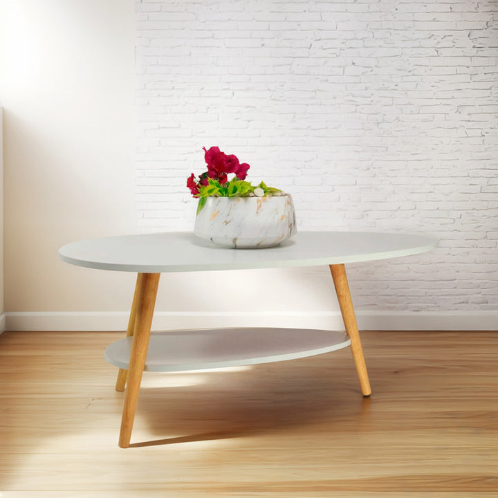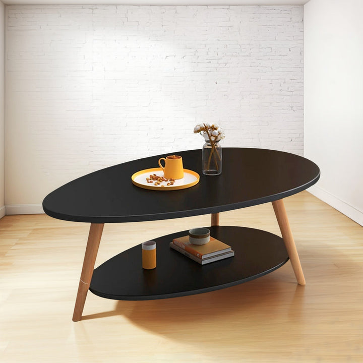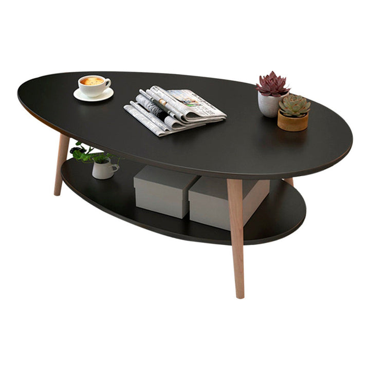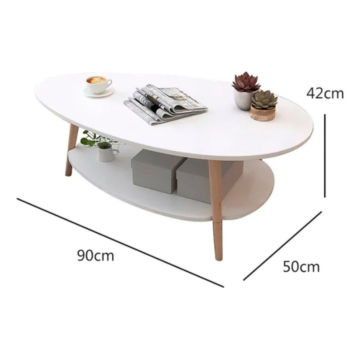 Mesa De Centro Ovoide Dos Niveles 90x50x42cm