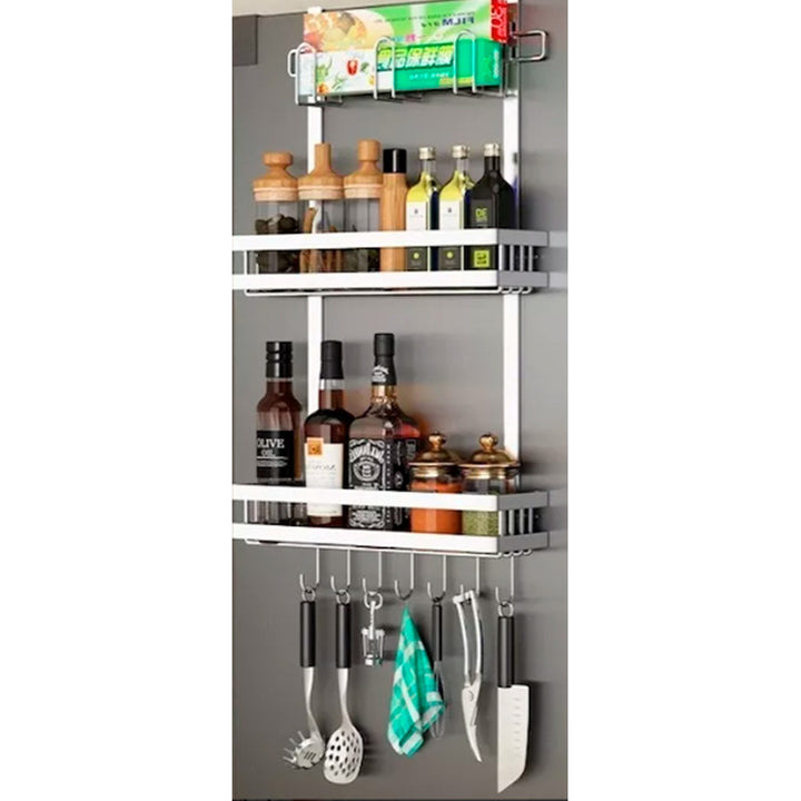 Estante Lateral Para Nevera, Organizador De Cocina Diseño simple y elegante: El estante de almacenamiento simplemente cuelga sobre la parte superior de su refrigerador para que pueda usarlo en cualquier lugar. Puede adherirse fácilmente al refrigerador. También perfecto en un baño, lavadero o dormitorio. No solo es práctico y eficiente, sino que ahora puede decorar su hogar con estilo. Especificaciones: * Tipo de instalación: Tipo de gancho. * Tipo: soportes y estantes de almacenamiento. * Material: Acero. ________________________________________________________