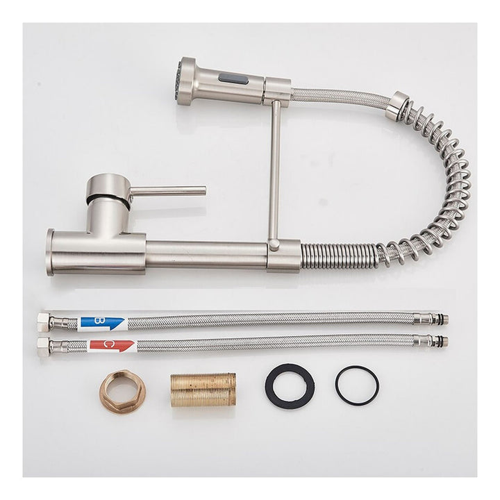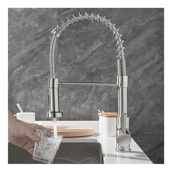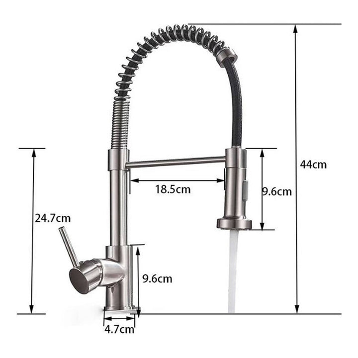 * El grifo viene con todos los accesorios de montaje, mangueras de agua de de alto y C incluidas y un adaptador, lata para 3/8" y 1/2" puedes hacer tu instalación sin un fontanero para ahorrar dinero y tiempo. * Su grifo de cocina de alta calidad ha sido procesado con múltiples capas de acabado, por lo que es fuerte y no se oxida. Los grifos de cocina de latón seleccionados están equipados con rociadores de alta calidad, que son resistentes y duraderos. * Dos modos de rociado le permiten pasar fácilmente de un chorro aireado a un rociado potente a través del control de botón, que cubre todo, desde enjuagar verduras hasta fregar en profundidad. * Material de latón, resistente y duradero, antibacteriano eficaz, el agua con bajo contenido de plomo está más asegurada. * Adopte un cartucho de cerámica de alta calidad. Reducen los puntos de fuga, son menos complicados de instalar y más altos que el estándar de la industria. * Manguera de acero inoxidable 304, tubo de pared engrosado, a prueba de compresión y explosión, anticorrosión y resistencia a altas temperaturas, no es fácil de romper y tener fugas. Especificaciones Técnicas: * Tipo de montaje Montaje en cubierta * Material Latón * Tipo de mango Palanca * Altura del surtidor 4.7 Pulgadas * Alcance del surtidor 12 Centímetros * Método de instalación Un solo orificio * Caudal máximo 1.8 Galones por minuto * Dimensiones del producto:18 x 5 x 44 cm; 1.65 kilogramos ________________________________________________________