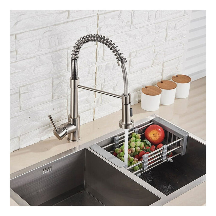 Llave Lavaplatos Plateada Flexible Acero Inox Grifo 360° Plateado Brillante