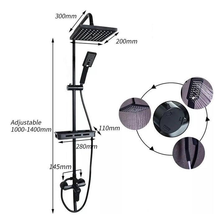 Modelo: Llave Monomando Columna Tina Ducha Moderna Cuadrada Negra