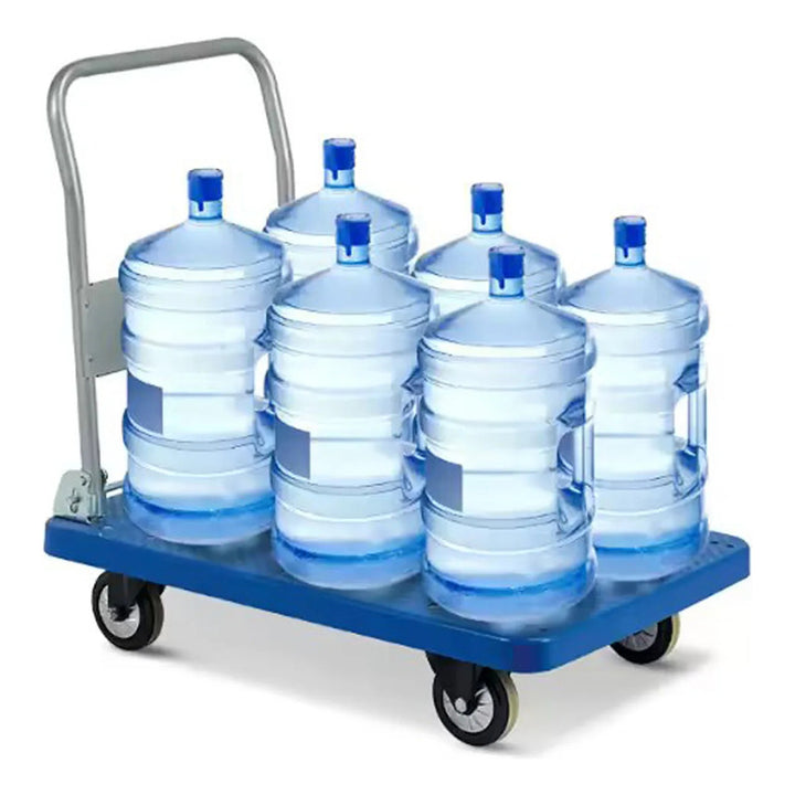 Este carrito de plataforma compacto es práctico para mover objetos que son demasiado grandes para llevar. Construido con acero fuerte, está bien equilibrado y seguro cuando se cargan artículos pesados. Funciona sin problemas, es fácil de dirigir y fácil de rodar al empujar y tirar, lo que hace que el trabajo de transporte sea muy fácil. Esta unidad se pliega firmemente y es ligera y resistente para apilar paquetes para maniobrar fácilmente a través de grandes protuberancias y esquinas estrechas. Diseño innovador para almacenamiento compacto Di adiós a los carros grandes y voluminosos que ocupan un espacio precioso. Guárdalo para un fácil almacenamiento, pero listo y disponible para cuando lo necesites. Dobla el mango en segundos para colocarlo al ras de la plataforma. Funcionalmente construido para maniobrar con confianza Construido para una fácil maniobrabilidad y máxima estabilidad. Cuatro ruedas seguras y resistentes ofrecen un transporte sin problemas y confiable. Ruedas diseñadas con funcionalidad giratoria de 360 grados para facilitar el transporte. Un carrito multiusos duradero para uso en cualquier lugar y en cualquier momento. Mueve artículos para el hogar, tablones de madera, herramientas de jardinería, equipaje, suministros de oficina con facilidad. Perfecto para un fácil almacenamiento en tu garaje, sótano, oficina, armario de almacenamiento o almacén. Adecuado para uso en interiores y exteriores. Independientemente de dónde se utilice, el carrito plegable es fácil de almacenar en tu garaje, oficina, almacén, etc. Las ruedas flexibles y el manillar fácil de empujar hacen que el transporte sea fácil sin mucho esfuerzo. Carro De Carga Plegable Manual Yegua 300kg 4 Ruedas Multiuso