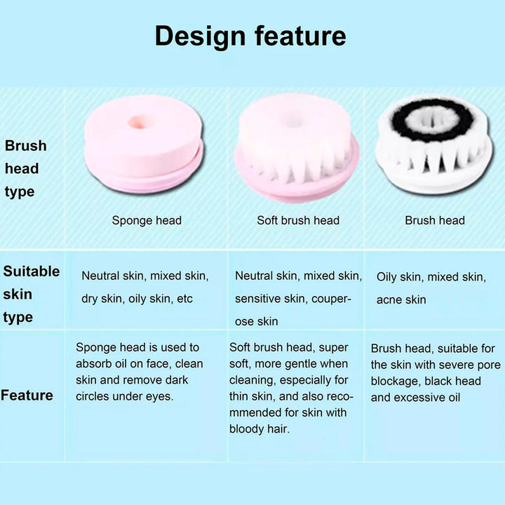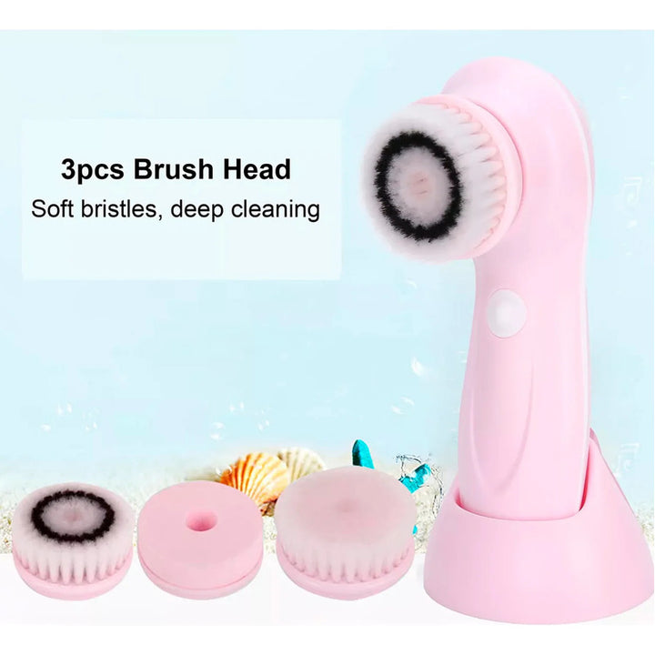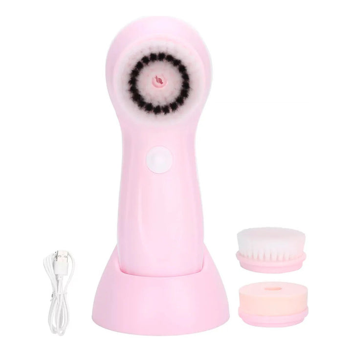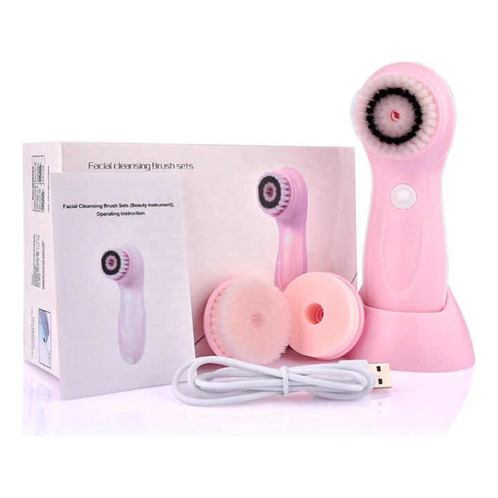 Limpieza profunda, 3 cabezales de cepillado, limpian los cosméticos y la suciedad de la superficie facial. Elimine la grasa, la piel muerta, los puntos negros y los puntos blancos. Buen efecto limpiador facial. Apto para todo tipo de piel, incluso para pieles sensibles.Velocidad de baja potencia para limpiar suavemente , elimina el maquillaje y la suciedad de la piel del rostro. Siguiendo los pasos: 1. Humedece el rostro 2. Coloque la cantidad correcta de limpiador facial en el cabezal del cepillo 3. Encienda el interruptor y repita con un movimiento circular para limpiarse la cara 4. Después de lavarse la cara, enjuáguela con agua limpia 5. Después de limpiar, limpie el rostro y lo seca. Lista del paquete: 1 x Host 3 x cabezal de cepillo 1 x base 1 x cable USB 1 * Cepillo De Limpieza Facial Basic * Tipo de artículo: cepillo de limpieza facial * Material: ABS * Color: rosa * Voltaje: 5 V * Tipo de batería: batería de litio * Capacidad de la batería: 500 mAh