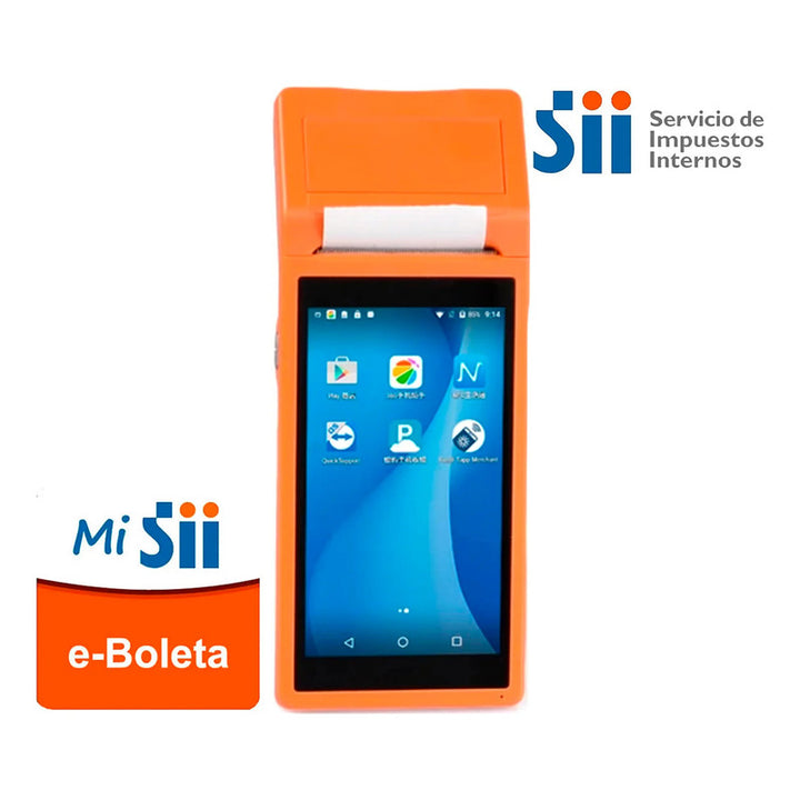 ENTREGA INMEDIATA COMPATIBLE CON SOFTWARE DEL SII. - Capacidad de conexión por Wifi. - Batería incluida con cargador de corriente o USB - Impresora térmica de 58mm - Aplicación pdf read - Sistema de impresión Instalado Si su RUT termina con una letra, escriba en mayúscula. SISTEMA OPERATIVO ANDROID 8.0.|1 CPU 4CORE MTK80 1.4GHZ RAM 1GB FLASH 8GB PANTALLA 5.2" HD, 1280X720 TOUCH G + F MULTI-TOQUE CAPACITIVO CÁMARA 500W RED WIFI 2.4G/5Ghz NFC GSM, WCDM, TDD_LTE BLUETOOTH 4.0 ALTAVOZ 0.8W ENTRADA MIC BATERÍA 7.4V / 2600MAH IMPRESORA 50MMS VELOCIDAD 50MM / S VIDA LABORAL 50KM 198mm x 79mm x 48mm Utiliza papel térmico de 44mm, 57mm 70mm/s (no incluido) NO INCLUYE CERTIFICADO DIGITAL E INSCRIPCION BOLETA ELECTRONICA DEBE SABER Antes de utilizar E-BOLETA (APLICACION de SII), tiene que TENER CERTIFICADO DIGITAL Y ESTAR inscrito en el sistema de Emisión de Boletas Electrónicas SII PUEDE CONSULTAR A SU CONTADOR, es muy fácil obtener esto con la ayuda de su contador. Nosotros solo proporcionamos equipo , lo entregamos listo programado para imprimir archivos pdf. Debe tener su RUT autorizado y contraseña de SII para emitir boleta ,Preste atención al formato RUT XXXXXXXX-X cuando ingrese. Si su RUT termina con una letra, escriba en mayúscula**