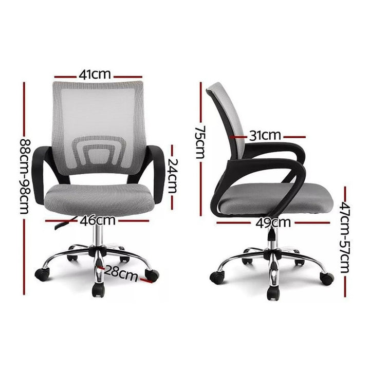 Características: * Fácil de instalar: viene con todos los accesorios y herramientas necesarias. Sigue las instrucciones de la silla de escritorio, encontrarás fácil de montar, y tiempo estimado de montaje de la silla es de unos 10-15 minutos. * Asiento suave y cómodo: silla de escritorio con cojín de esponja de alta densidad, más flexible, silla de oficina con un diseño de espalda media, adorno rectangular no solo como decoración, puede proporcionar un buen apoyo lumbar que te hace sentir cómodo. * Con reposabrazos: es una buena opción para añadir una de nuestras sillas de ordenador en tu oficina o poner una silla de escritorio en tu hogar/sala de actividades. La altura del asiento se puede ajustar. * Ergonómica: el cojín de la silla de oficina, el reposabrazos se adapta al diseño de ingeniería del cuerpo humano, permite que tu cuerpo y silla de malla se ajusten perfectamente, se adapta a un uso prolongado, te da un diseño creativo. Especificaciones técnicas: * Color: Negro / gris * Cantidad incluida: 1 * Dimensiones del producto: 80 x 58 x 50 cm * Material: Malla * Material del armazón: Metal * Peso del artículo: 5 kg * Máximo peso recomendado: 110 kilos * Tipo de material del asiento: Nylon ________________________________________________________