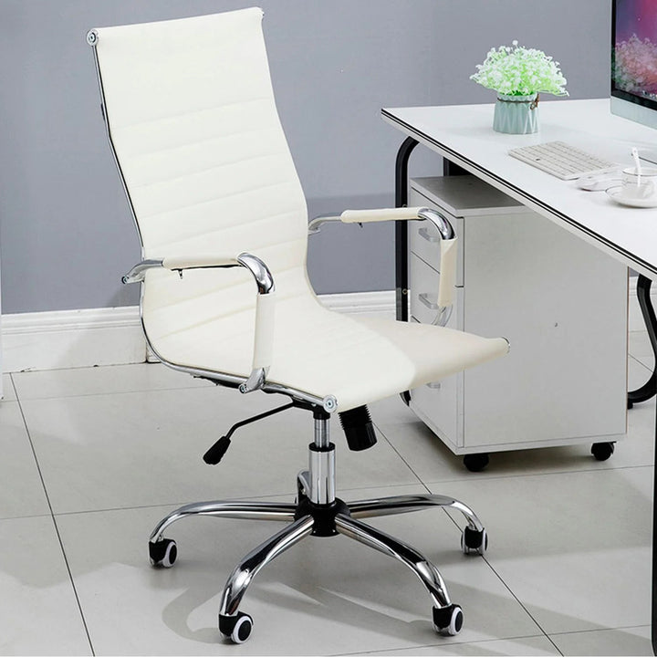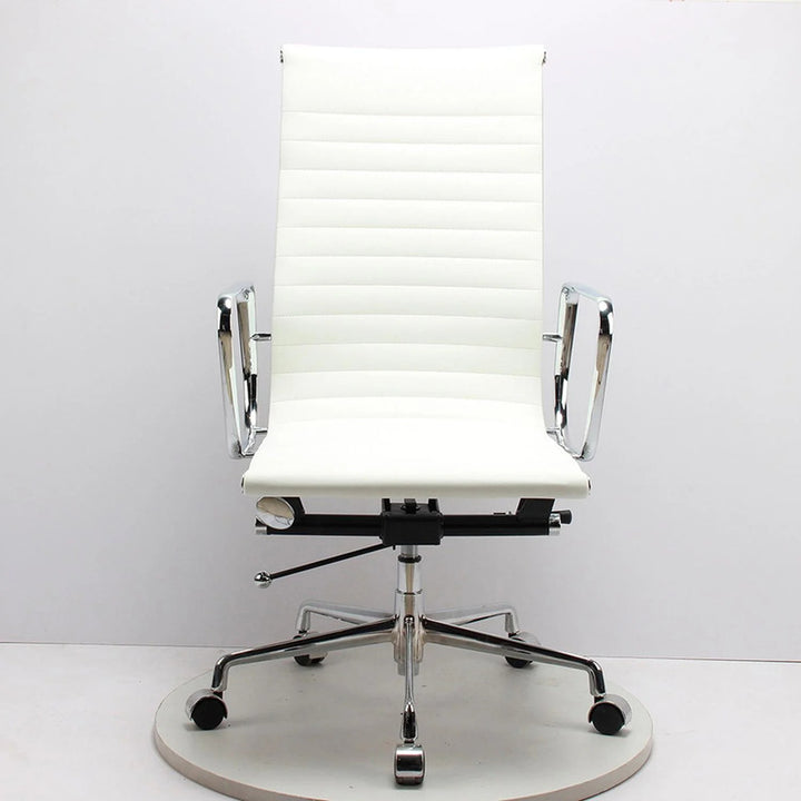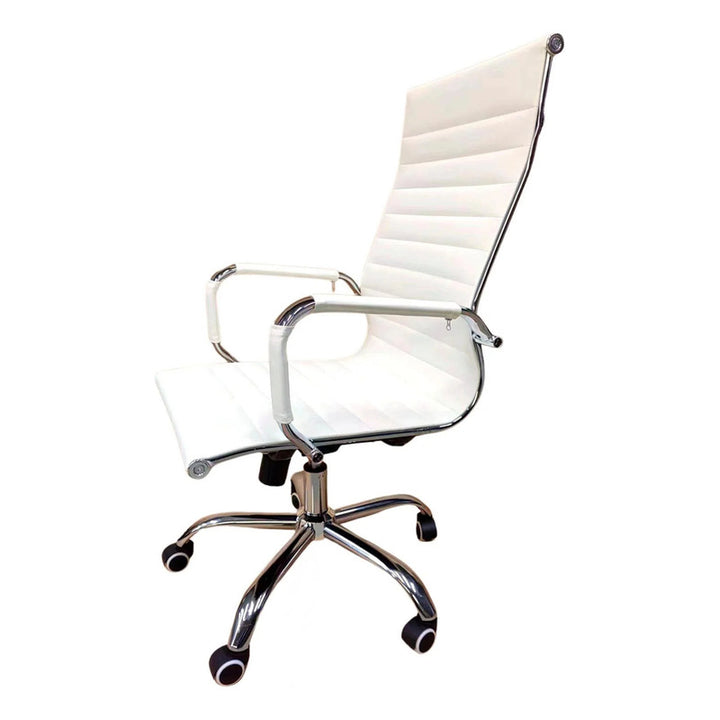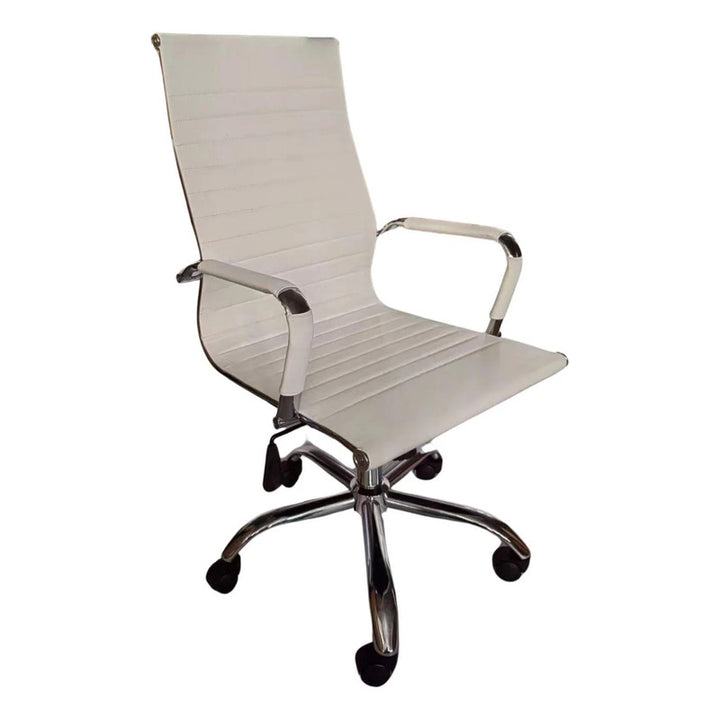 Silla Oficina Ejecutiva Aluminio Con Apoya Brazos Blanco Cuero Sintético