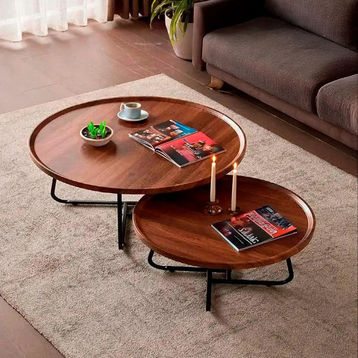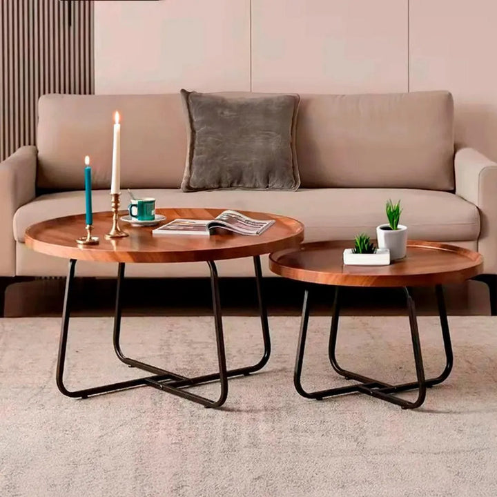 Juego Mesa De Centro Living 80+60cm Color Madera Café