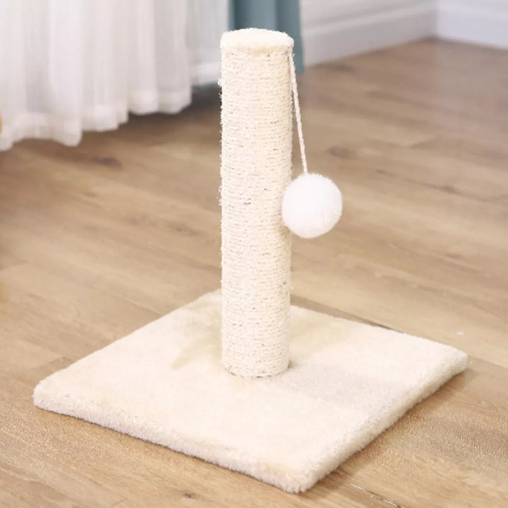 Rascador muy resistente ofrece a su gato una superficie ideal donde afilarse las uñas y donde sentirse cómodo. Gracias a su diseño exclusivo quedará fantástico en cualquier lugar de su casa. Los gatos necesitan arañar por instinto. Esto les ayuda a afilar sus uñas, eliminar las capas muertas de sus garras, estirar y flexionar sus cuerpos. Además ayuda a proteger los muebles de los arañazos. Tenga en cuenta que su gato necesite tiempo para acostumbrarse al rascador Especificaciones * Medidas: 32x15cm * Material: Madera y Sisal Natural * Incluye: 1 pompón * Ideal Para: Gatos ________________________________________________________