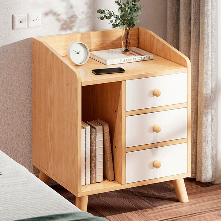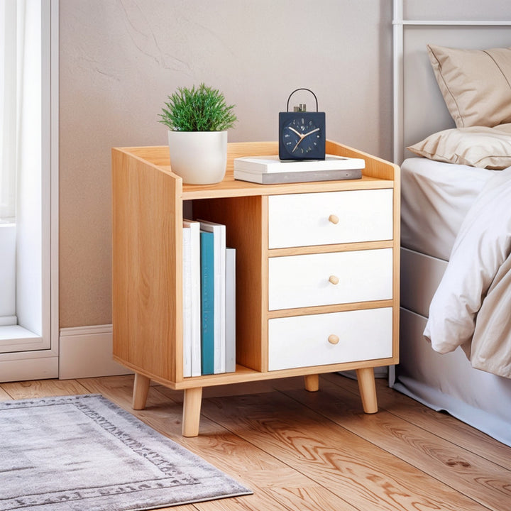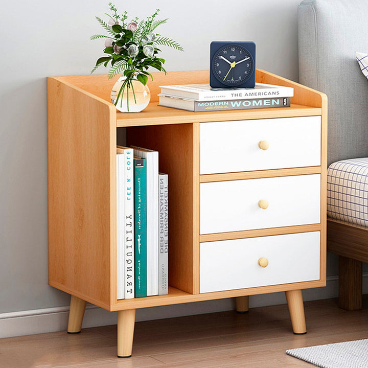 Velador 2 Niveles Con 3 Cajones 62*30*43 Mate Marrón Claro