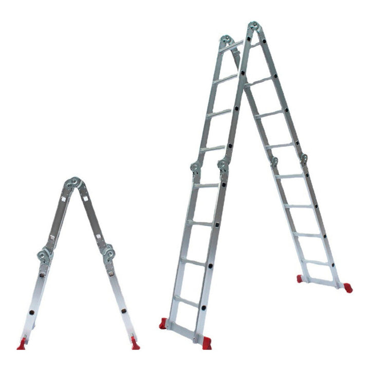 La escalera multiusos es un producto multifuncional usable en diversas posiciones pues ha entendido de su nombre. El estado de la plataforma ofrece una zona de trabajo amplia mientras que se utiliza como escalera de la bifurcación en una posición. Pues es resto contra, poder alcanzar ultra alto. Las junturas de acero bloqueadas aumentan la función y los estabilizador procuran zona de trabajo segura. Transportable en equipaje y puede ser establecido en la posición y el tiempo previstos. * Escalera Articulada 4.7 Mts 16 Peldaños Profesional