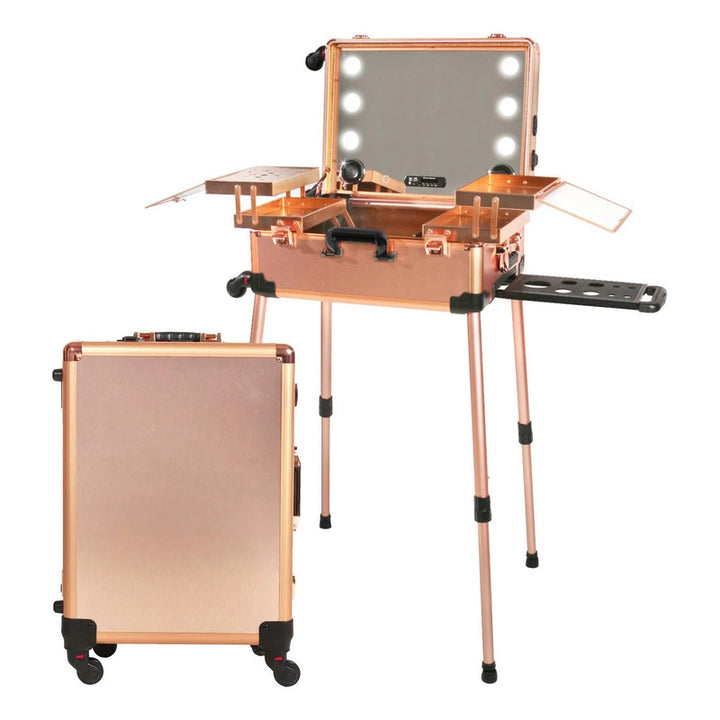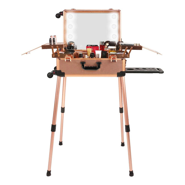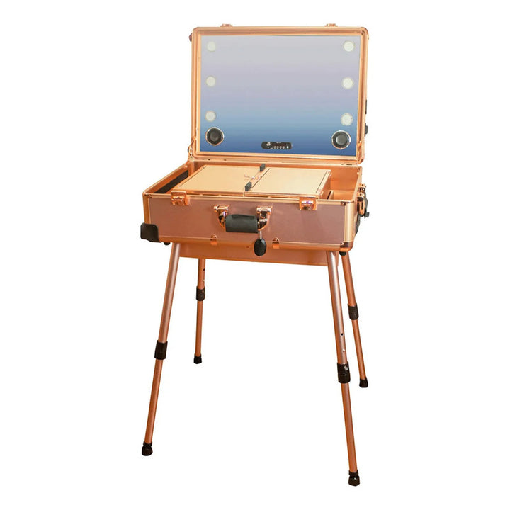 La Maleta de maquillaje profesional Ovonni es la mejor opción para uso personal o comercial El estudio rodante se adapta perfectamente a artistas de maquillaje independientes, ya que es espacioso y fácil de transportar. También cumple con los requisitos de ahorro de espacio de los estudiantes. Esperamos que esta elegante funda cosmética hecha de materiales de alta calidad y aleación de aluminio pueda mostrar profesionalidad y llevar tu moda de maquillaje. Compartimentos adicionales para tus suministros de maquillaje, para que puedas acomodar cosméticos y pinceles grandes y pequeños a tu conveniencia. El estuche de maquillaje de los artistas, lleva tu maquillaje donde quiera que vayas. 2 Parlantes 1 Bandeja extraíble con herramientas de cabello touch switch 4 patas telescópica 4 bandejas extendibles 6 luces Led Conexiones bluetooth Medidas 61x43x22 Peso 16 ________________________________________________________