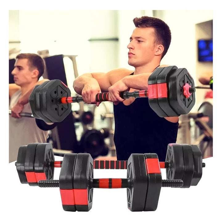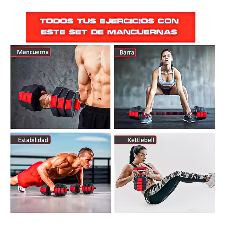 Modelo: Set Mancuernas Ajustables 15kg 3 En 1 + Barra + Kettlebell