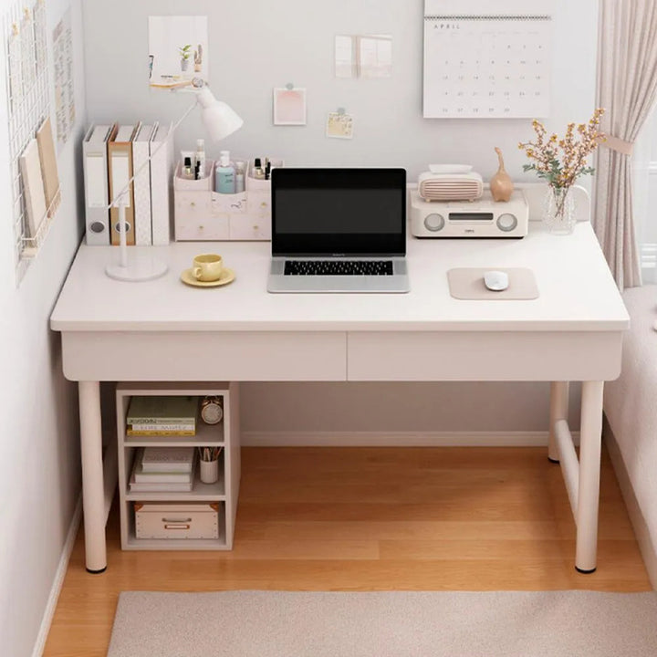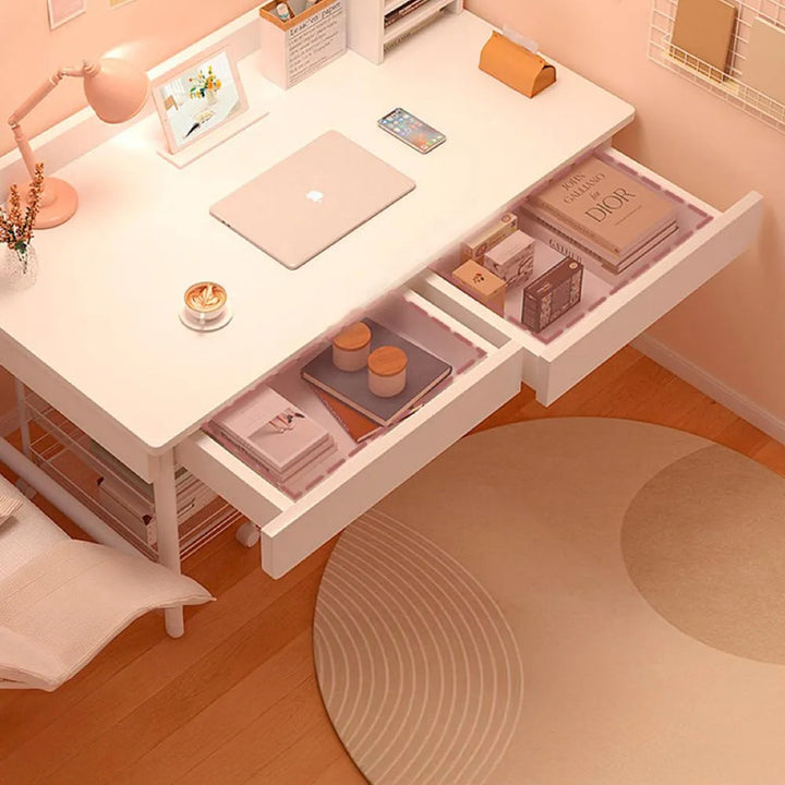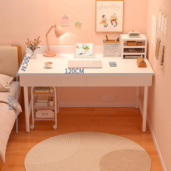 Escritorio con cajones: este escritorio con almacenamiento permite un amplio espacio de almacenamiento, lo que te da una parte superior de escritorio de aspecto más limpio. Además del escritorio, hay dos cajones de almacenamiento. Ambos lados satisfacen tus diferentes necesidades de almacenamiento en el hogar u oficina. Tener el escritorio de trabajo desde casa para tu vida feliz. Este escritorio se adapta perfectamente a las pequeñas esquinas de la habitación y ofrece mucho espacio para las piernas para descansar y almacenar. Te sorprenderá la suficiente sala de trabajo que proporciona el pequeño escritorio. Está diseñado para que trabajes y estudies en el aula, la oficina o en casa. Lo suficientemente resistente para su uso: los marcos de metal grueso mejoran la estabilidad y la seguridad en el uso. El escritorio extremadamente fácil de limpiar. Las patas de alto grosor son lo suficientemente fuertes como para soportar paquetes de alta resistencia. Fácil de montar: nuestro escritorio es fácil de instalar, incluso un novato puede instalarlo fácilmente, si tienes algún problema durante el proceso de instalación, no dudes en ponerte en contacto con nosotros. Elegante y práctico: un aspecto limpio y simple que se adapta a casi cualquier lugar. El tocador moderno es adecuado para sala de estudio, dormitorio, sala de estar, sala de juegos, habitación de los niños, oficina.
