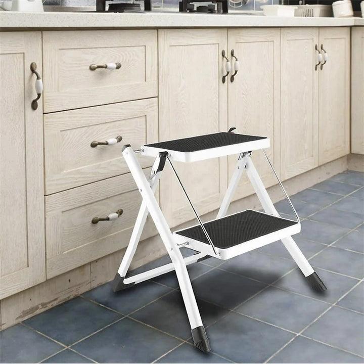 Escalera Multiuso Plegable 2 Peldaños Ultra Compacta Color B Blanco