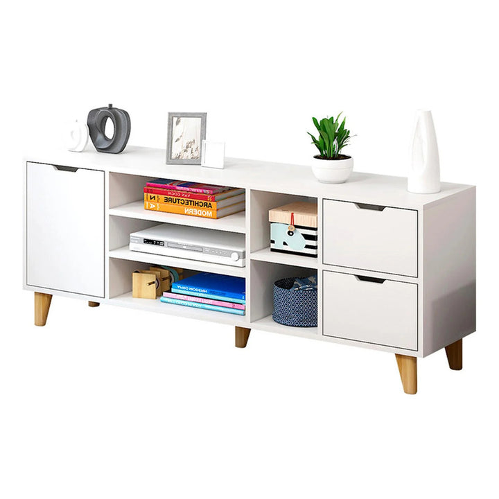 El "Rack TV 120x30x55cm 3 cajones parece ser un mueble de televisión. Dimensiones: El mueble tiene unas dimensiones de 120 centímetros de ancho, 30 centímetros de profundidad y 55 centímetros de altura. Estas dimensiones indican que es un rack de TV de tamaño mediano, adecuado para alojar televisores de hasta cierto tamaño y proporcionar espacio de almacenamiento adicional. 3 cajones Este rack de TV tiene una puerta, que es útil para ocultar los componentes electrónicos u objetos que desees mantener fuera de la vista. Melamina: La melamina es un material comúnmente utilizado en muebles por su durabilidad y facilidad de limpieza. Se utiliza para la fabricación de muebles resistentes y asequibles. Este tipo de rack de TV proporciona un lugar para colocar tu televisor y espacio adicional para almacenar componentes de entretenimiento, como reproductores de DVD, consolas de juegos, decodificadores de cable y otros objetos relacionados con el entretenimiento. La puerta es especialmente útil para mantener organizados tus dispositivos y objetos. Si estás interesado en comprar este mueble, te recomendaría consultar con el fabricante, Homer Design, o buscar en tiendas de muebles locales o en línea que ofrezcan productos de esta marca. Asegúrate de que las dimensiones se ajusten a tus necesidades y que el estilo del mueble se adapte a tu decoración.
