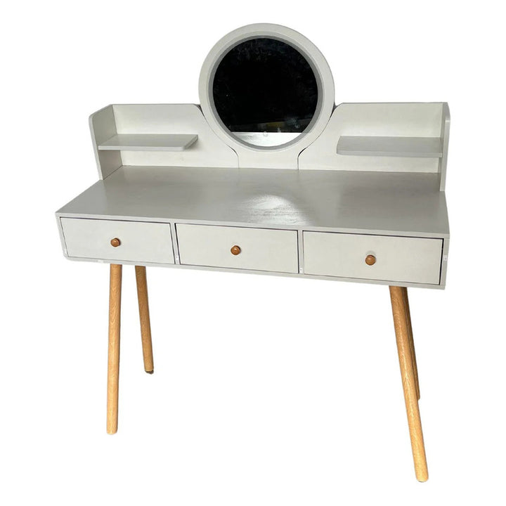 El Tocador de Madera con Espejo es un mueble elegante y funcional que brinda un toque de sofisticación a cualquier habitación. Con unas medidas de 100 cm de ancho, 40 cm de profundidad y 75 cm de altura, ofrece un espacio amplio y cómodo para maquillarse o peinarse. El diseño está fabricado en madera de alta calidad, lo que garantiza su durabilidad y resistencia a largo plazo. Además, cuenta con un espejo grande y claro, perfecto para verse con claridad al realizar las tareas de cuidado personal. Este tocador cuenta con un cajón espacioso, ideal para almacenar productos de belleza y otros accesorios, manteniéndolos ordenados y al alcance de la mano. El acabado en madera natural le da un aspecto cálido y acogedor que combina con cualquier estilo de decoración. En resumen, el Tocador de Madera con Espejo y 3 cajones es un mueble elegante y práctico que ofrece una solución de almacenamiento para tus productos de belleza y un espacio de cuidado personal cómodo y funcional.