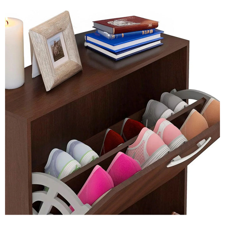La zapatera es perfecta para organizar tus zapatos de forma eficiente. Con una capacidad de hasta 12 pares, este zapatero es ideal para mantener tu calzado ordenado ya la mano. Su diseño moderno y compacto se adapta a cualquier espacio, con dimensiones de 65 cm de ancho, 22 cm de profundidad y 98 cm de altura. Fabricada en MDP, esta zapatera es resistente y duradera, garantizando una larga vida útil. No requiere ensamblado, por lo que podrás disfrutar de su funcionalidad de inmediato. Con dos puertas que se abren fácilmente, podrás acceder a tus zapatos de manera rápida y sencilla. Ideal para mantener tu hogar ordenado y con estilo.