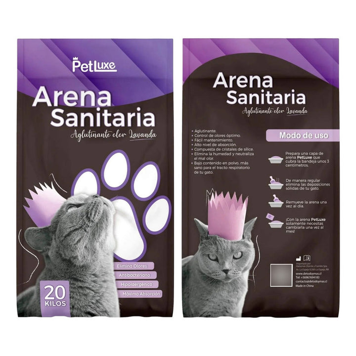Arena Aglutinante Lavanda PetLuxe 20kg Mantén el ambiente de tu hogar fresco y limpio con este producto diseñado para simplificar la rutina de limpieza de la caja de arena de tu gato. La Arena Aglutinante PetLuxe forma aglomerados sólidos al entrar en contacto con la humedad, facilitando la remoción de los desechos de forma rápida y sencilla. Este proceso mantiene la caja de arena limpia y sin olores desagradables, proporcionando un ambiente higiénico y confortable para tu mascota. Nuestra fórmula avanzada reduce eficazmente los malos olores, gracias a su capacidad de absorción y control de humedad. Además, su presentación de 20kg asegura un uso prolongado, brindando una solución económica y duradera para el cuidado de tu felino. Con la Arena Aglutinante PetLuxe , disfrutarás de un hogar más limpio y fresco, y tu gato estará más feliz. Elige esta opción inteligente para el bienestar de tu mascota y de tu hogar. Características clave: - Presentación: 20kg - Fácil aglomeración y remoción de desechos - Control efectivo de olores - Mayor durabilidad y economía