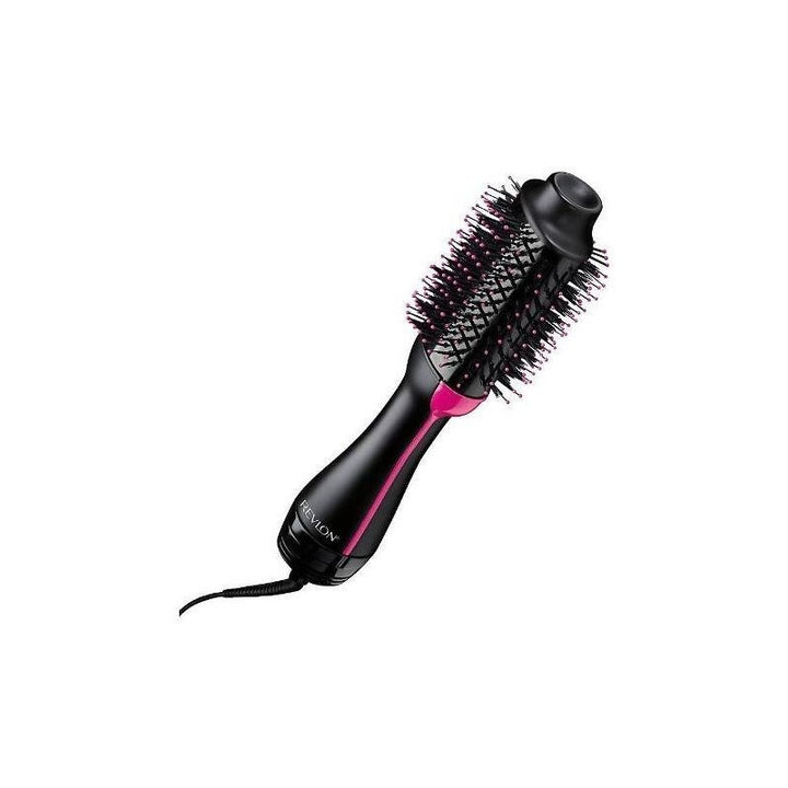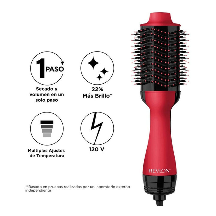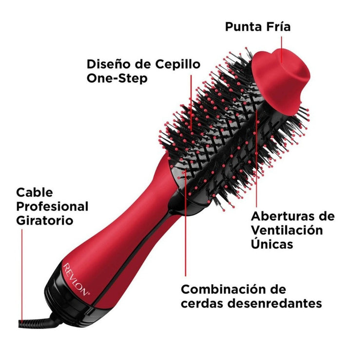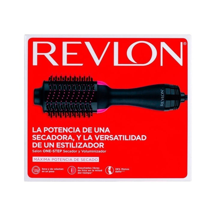 SECADOR Y VOLUMINIZADOR DE PELO, SALON ONE-STEP, REVLON, ORIGINAL. El secador y voluminizador REVLON One Step está diseñado para proporcionar un volumen espléndido y un brillo intenso en un solo paso. La forma de diseño único cuenta con los lados ligeramente curvos para alisar el cabello, mientras que los bordes redondos crean volumen en las raíces y rizan las puntas, resultando en estilos magníficos en menos tiempo. Cuenta con dos regulaciones de temperatura más aire frío para sellar tu peinado. A diferencia de los secadores de cabello convencionales, este voluminizador puede colocarse más cerca del cuero cabelludo para levantarlo. La tecnología de iones realiza la carga neutra de iones negativos que ayudan a mantener la superficie del cabello acondicionado y suave ayudando a reducir el frizz y la estática para un cabello sano y brillante. El recubrimiento de cerámica ayuda a reducir el daño causado por el uso frecuente de secadora con una mejor distribución uniforme del calor que penetra el cabello más rápido y estiliza desde adentro hacia afuera, reduciendo el daño causado por el calor. Diseño de pincel oval con tecnología de Cerdas de jabalí (más volumen, para puntas curveadas y suaves) REVLON con la marca One Step es original. Revlon lleva años trabajando en la combinación correcta de calor, saturación de iones y pruebas de seguridad. Especificaciones Eléctricas 220-240V 50-60Hz 800W Clase II. Enchufe nacional. Certificación SEC