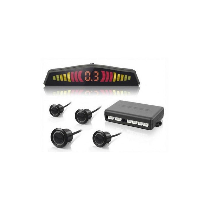 Sensor color negro brillante color exacto en segunda foto Sensor estacionamiento con: 4 detectores de proximidad Pantalla de indicación en LCD Aviso por visualización y sonido de alerta de acercamiento Modulo de control del sensor Disponible en color negro matte, para combinarlo y camuflarlo con el color del automóvil