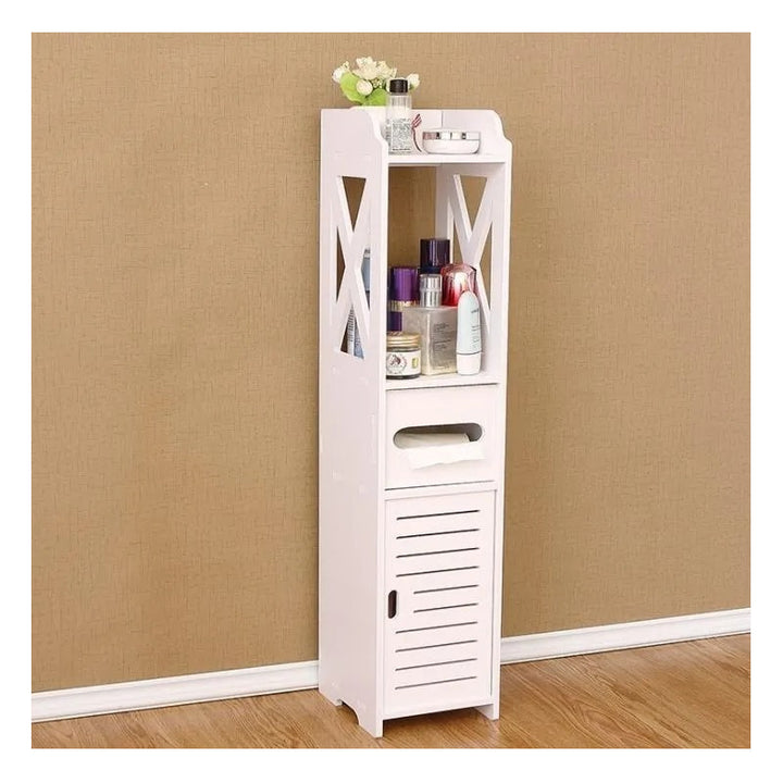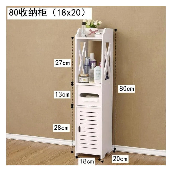 Estante de baño labanderia organizador * Medida Total: 80cm Alto, 20 cm ancho, 18 cms profundidad. * Material: MDF * Estante ideal para organizar su baño. * Color disponible: BLANCO * Tamaño empaque: 20X25X80cm